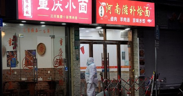 Nhân viên phòng dịch đứng bên ngoài một tiệm mì ở Thượng Hải hôm 30-11 Ảnh: REUTERS